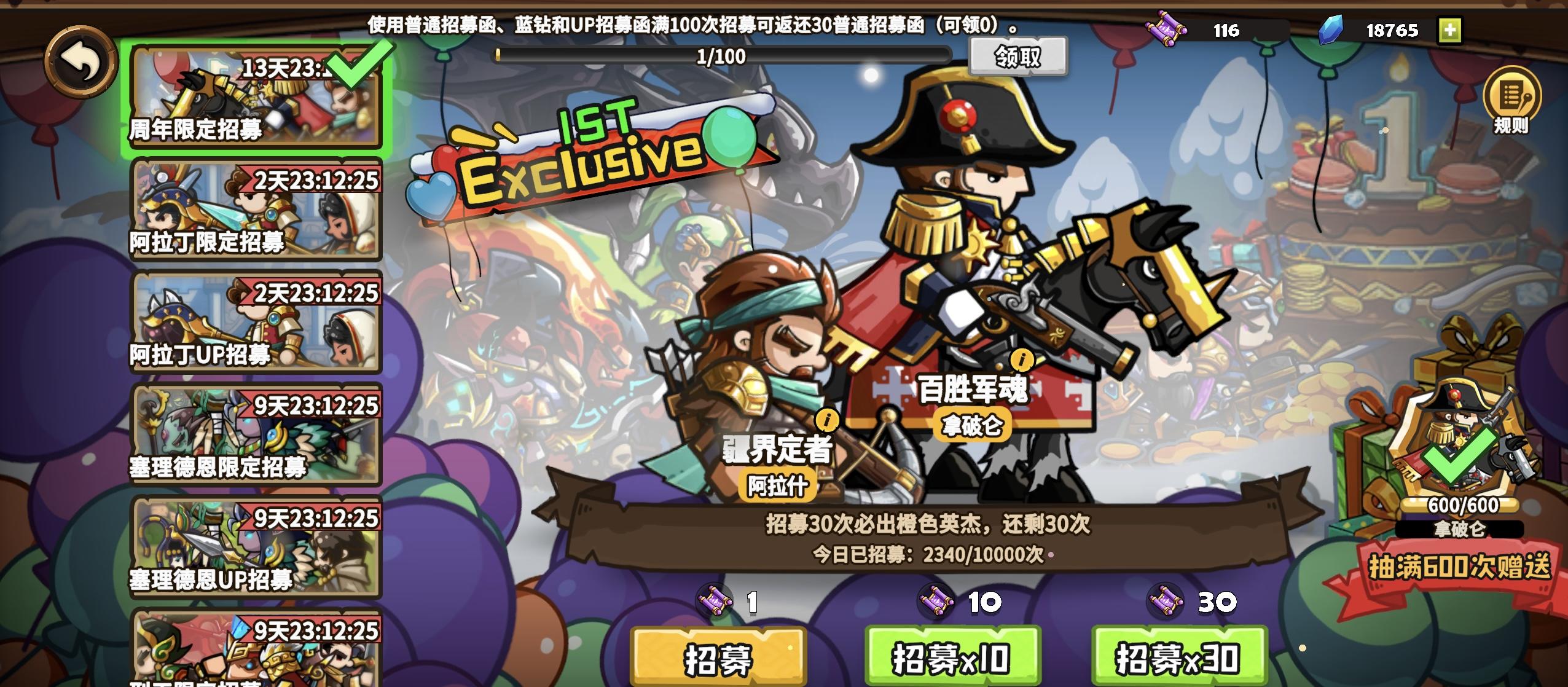 all in 拿破仑这玩意儿还没上手,看介绍很强啦配合李舜臣可以帮助前期快速解决飞兵的方案(又想起去年建号被几个飞兵切菜的恐惧)去年没有刷开小号,傻乎乎乱抽就开始玩了,前期真的蛮痛苦的新区开号的好处其他无所谓,主要诸神有一点点游戏体验吧,号养好了可以和其他玩家赛马……紫抽钻石别乱花了最近版本是这样的,大陆池和普池坑钱已经满足不了策划了,现在每个月两个节日池,而且都是必抽的,所有钻石紫