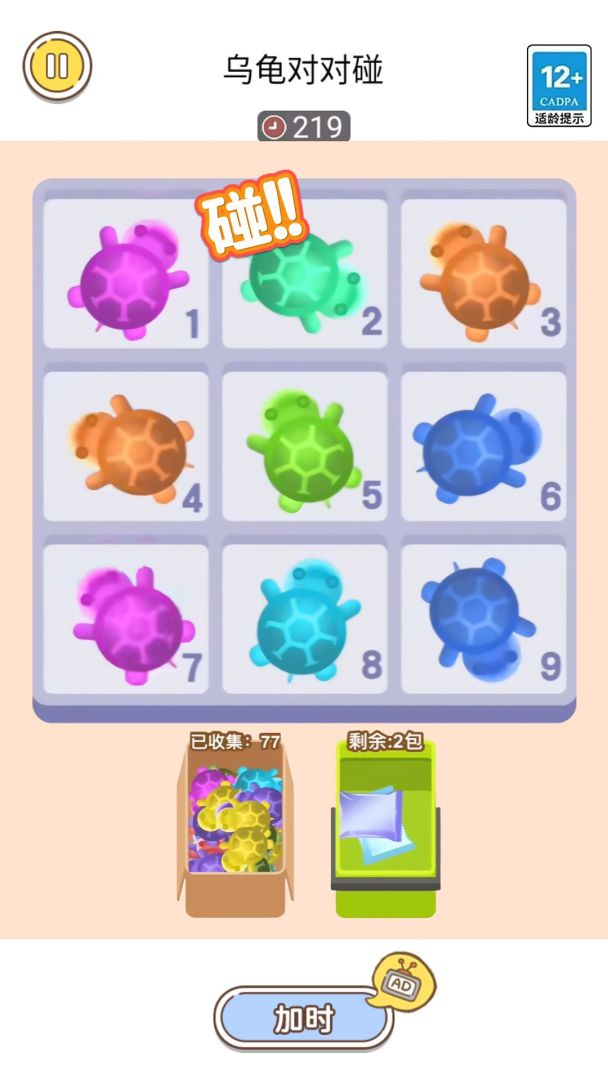《小乌龟对对碰》是一款轻松有趣的单机休闲益智游戏,玩家将在游戏中通过翻卡片将各种迷你小乌龟进行配对,锻炼记忆力和反应速度,享受愉快的游戏时光。游戏中有多种可爱的乌龟图案,增加游戏的趣味性。