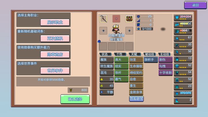 初始设定:自由模式0勋章农夫 困难难度 贫乏资源经过漫长的刷新后,农夫“玄武”刷到尚属可用的天赋后,终于成功组建了只有一个光杆团长的冒险团。