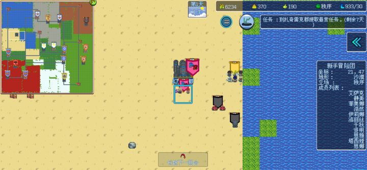 基础战斗机制为回合制战棋战斗,战场上根据勇者的速度决定行动顺序。信息面板 标注1:当前行动的勇者信息。标注2:当前回合数,以及当前时间,夜晚的时候命中降低20%。标注3:行动顺序显示,所有勇者行动完后回合结束。标注4:点击查看的勇者信息,在地图上和顺序界面上会显示黄色框线。可以用来估算行动。标注5:地形信息,依次为:此格子移动消耗的体能,消耗的移动力以及提供的闪避加成。标注6:菜单