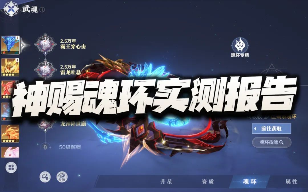 大家好,我是正在看动漫的何二维一。今天的攻略是时候来简单聊聊5万年魂环的取舍问题了,因为目前部分朋友已经是可以拿到5万年魂环了,而且未来5万年魂环的数量也必定是越来越多,但我们在拿到其之后应该优先给谁倒成了个让人有点纠结的难题,所以今天的攻略咱们就来聊聊其中的逻辑。接下来的内容我们就以参考因素+实际举例的方式来为大家讲解,希望能给大家一些小小的帮助和欢乐。 第一因素:锤三神赐优先这个因素.....
