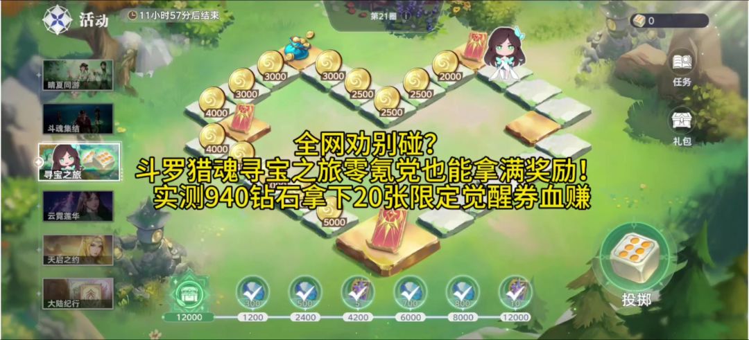 全网劝别碰?魂师朋友们紧急集合!斗罗猎魂寻宝之旅零氪党买钻石骰子也能拿满奖励,主播实测940钻石拿下20张限定觉醒券血赚!#斗罗cp大乱炖 #斗罗大陆猎魂世界 #斗罗大陆猎魂世界创作征集令 #斗罗大陆猎魂世界星计划 #斗罗猎魂最新攻略 #这才是斗罗天花板