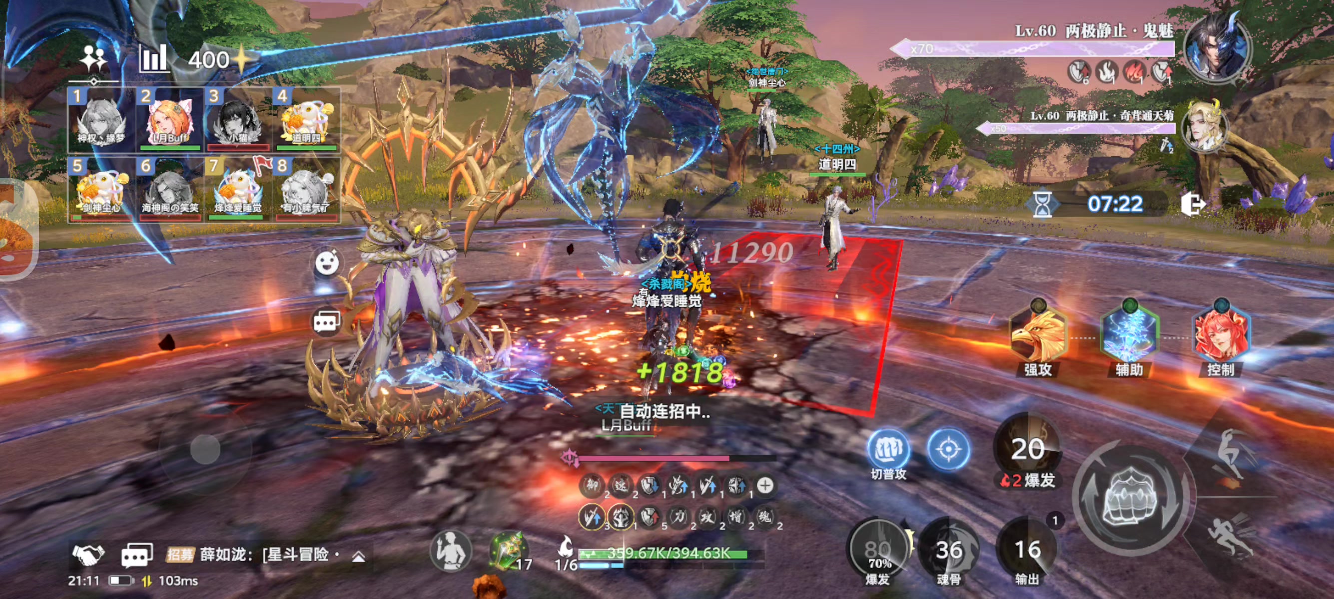 打团战月关跟鬼魅一直锁血着