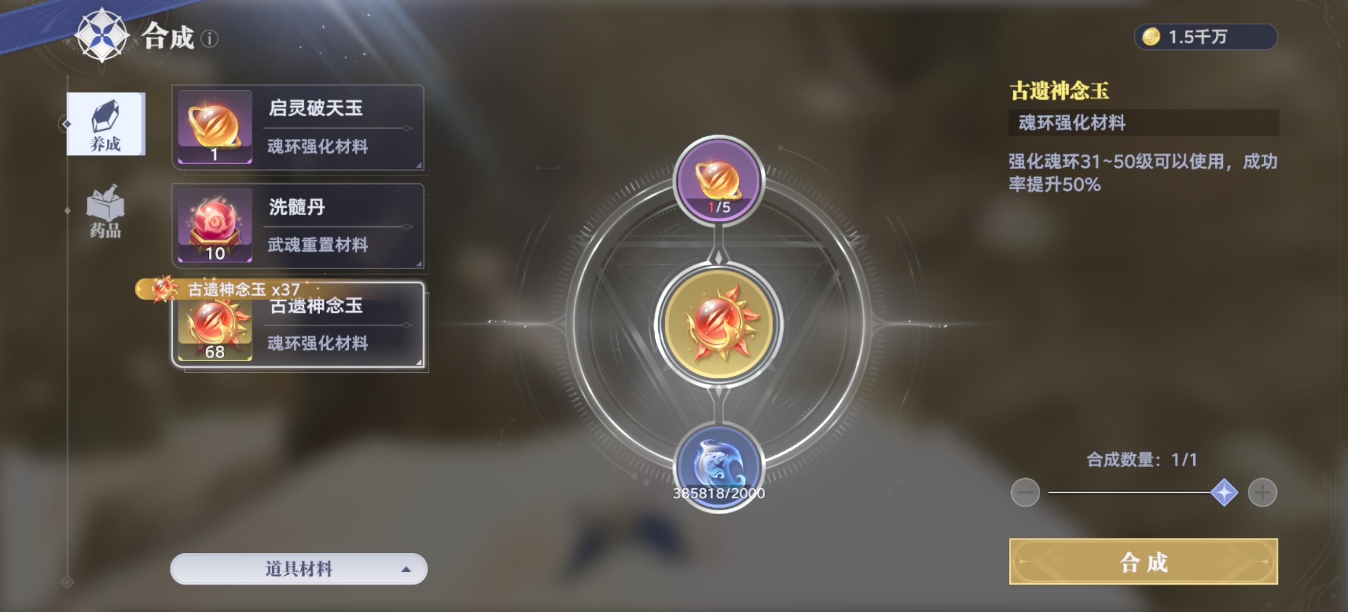 准备了68个强化材料,35到45,用了62个,就升了十级,你告诉我强化概率有55吗?平民玩家有这么多资源跟我一样硬堆吗?(成共次数÷总次数)×100,16.12的成功概率你告诉我有没有55的成功概率?不行你就加个保底,一个魂环只要吃了100个材料直接强化满级,写个55概率实际概率不到20搁这恶心谁呢