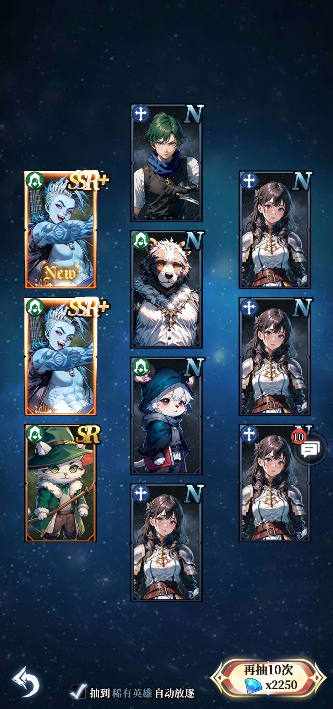 #永暮幻想 零氪平民玩家前期抽到ssr+的能升星的,先进化做主要培养,前期抽卡券不够用只能先混搭,抽卡有点离谱,有核心的阵容抽卡不出同阵营的,一直给没核心卡的,所以前期随缘配队