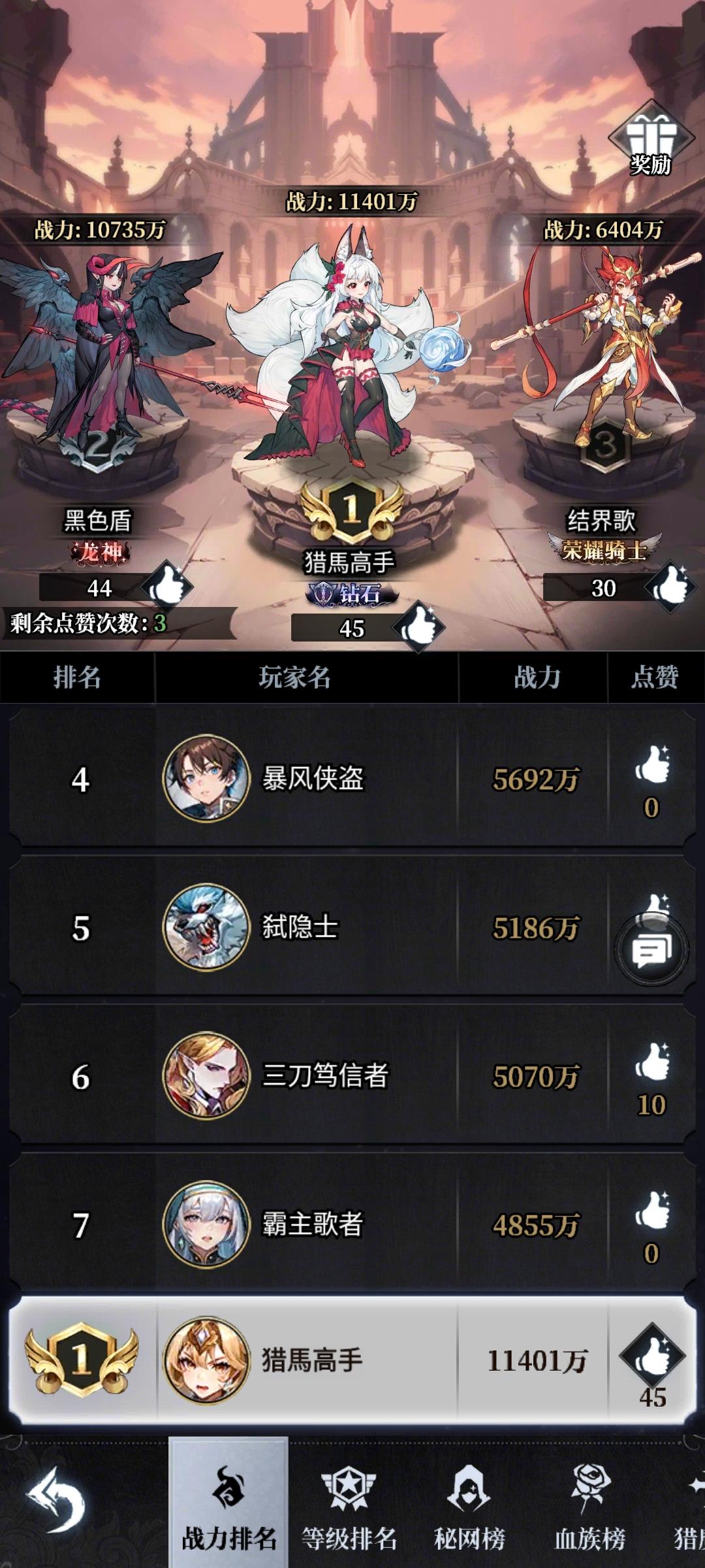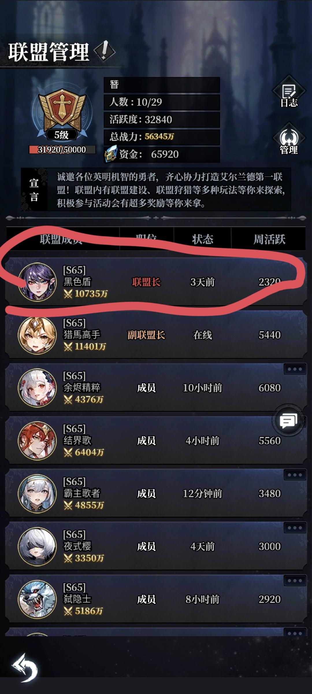 为啥说算是白嫖呢,因为冲了个首充,问题不大!下面还是说几个重点。1、白嫖金币很缺很缺,你看我的金币就知道了,就这我还有十几万材料没强化,人物等级也是空有经验没金币升不上去,所以前面两期材料一定一定要转成金币。2、目前玩下来,PVE的阿黛雪女狼的体系还是不错的,创5路伤害也不错,抵得上八成创0尼克斯的水平,感觉前期没必要补狐狸奶妈之类的。3、选择区选择盟很重要很重要。我这战力在白嫖来说肯定