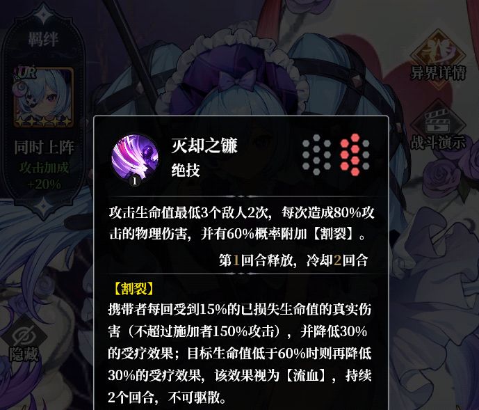 这次UR活动持续两周,另一个是没啥亮点的治疗类型UR。憋的住的小伙伴可以前五轮UR只拿一个白板猴子,然后等到开服第45天的这轮UR活动,将攒的异界卷轴都花在这个最强UR上,就更起飞了。补了个人物绝技图。