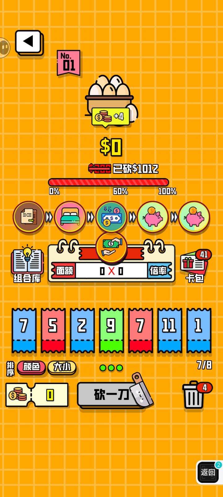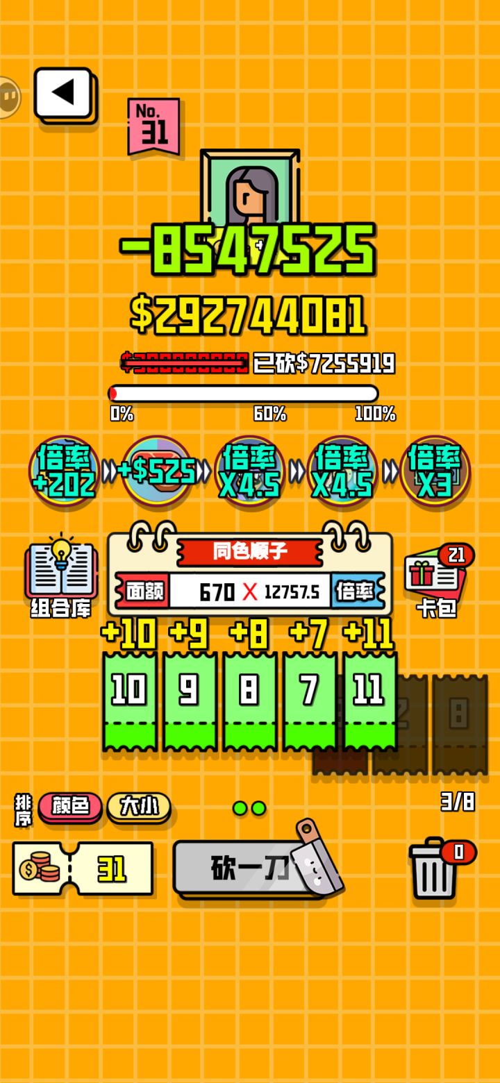 可以通过卡牌组合来砍价,有些道具卡牌还可以升级这些卡牌组合砍价的价格,如果你足够幸运,可以抽到钻石以及黄金的道具卡牌