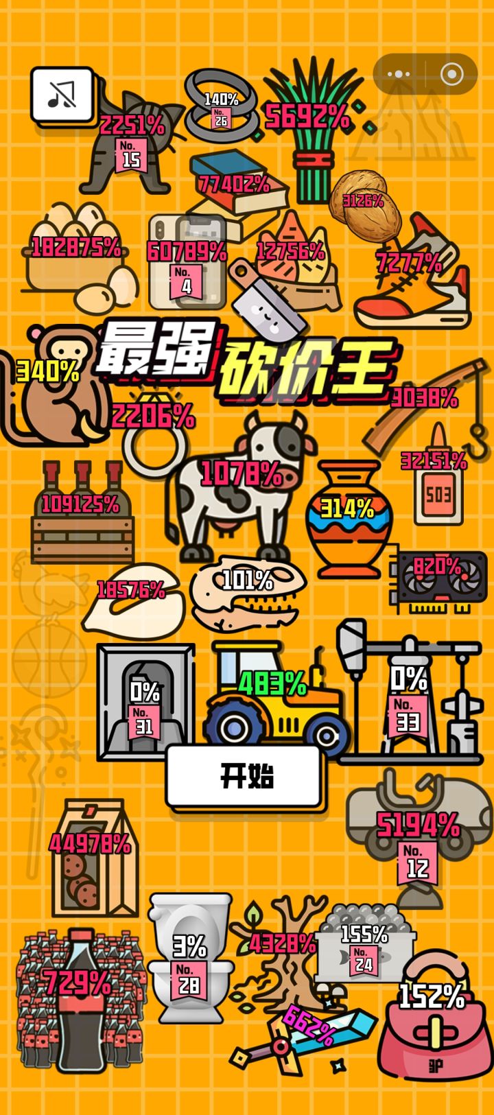 如果你足够厉害,你看的价格高于原本的价格的话,在主页,你可以在这关的图案上看到一个百分数哦。:.゚ヽ(*´∀`)ノ゚.:。