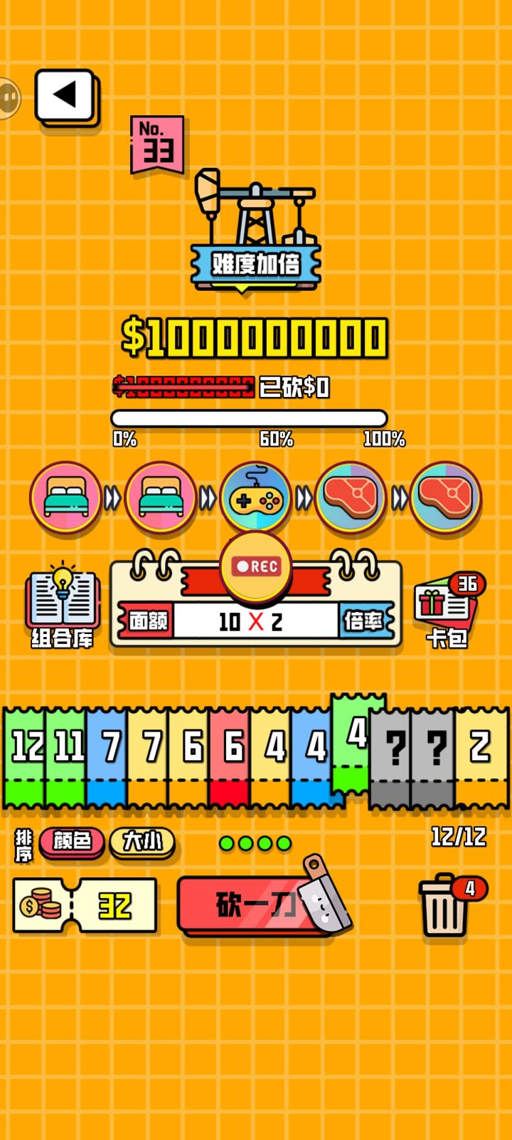 理论上这套搭配没有上线,前期越早获得福和复制还有录音机越好,当然这游戏有bug,退出后道具不会重置,大部分效果还在,所以就可以用这个bug来无限刷倍率,第一次只出一张可以复制当前使用的牌,只要一直刷一种颜色的12就行了,因为复制的12也会复制录音机的面值(录音机效果:使用的有效卡在本局游戏可以永久增加4面值),觉得倍率刷的差不多了可以把复制换成大法师(大法师效果:复制右侧道具的效果)#最强砍价王