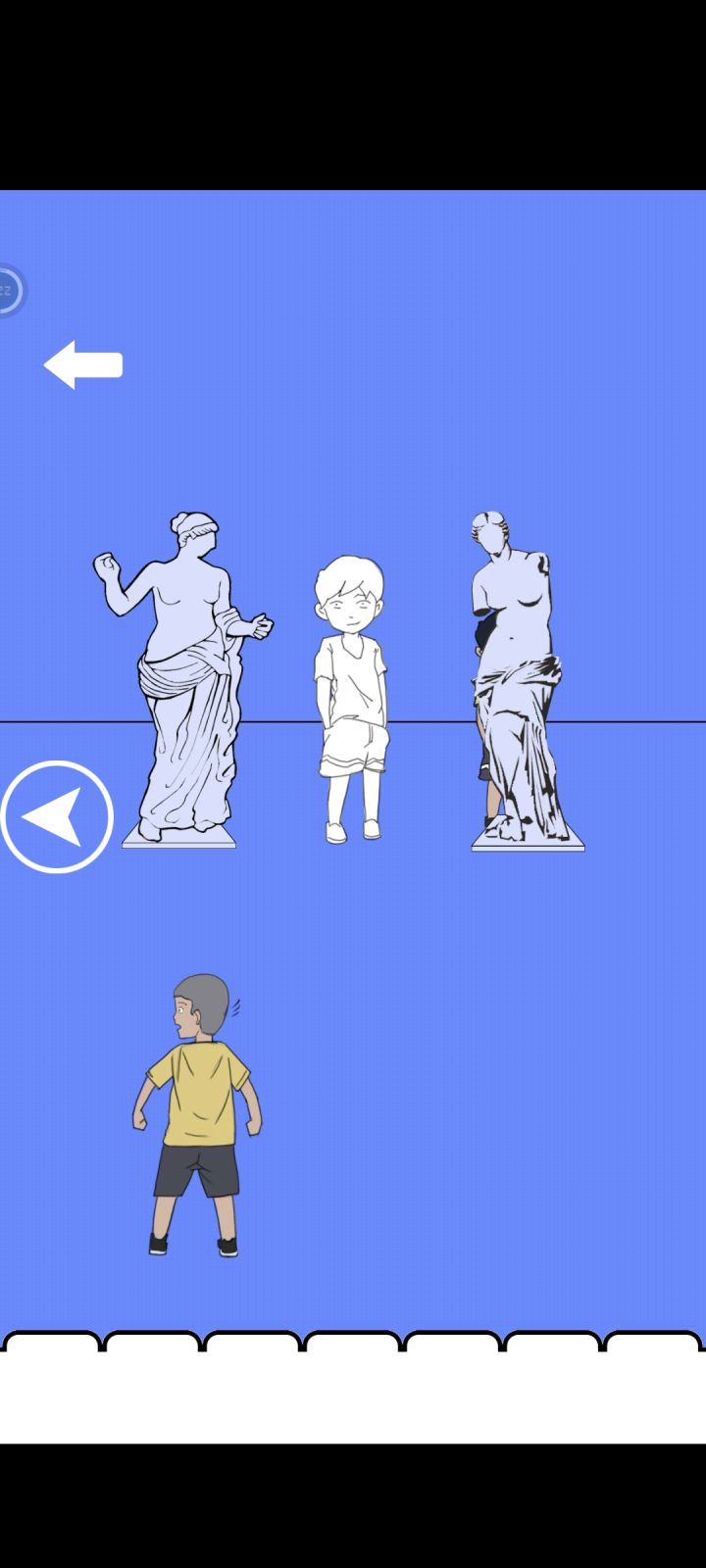 第十四关 点击收集墙上的图案,其中有两个是变大的不能用,讲四个变小图案移至雕像,使其变小藏其身后,在点击雕像变大。