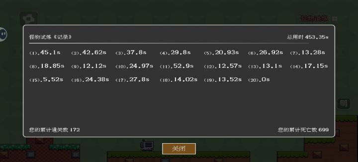 关卡问题:怪物试炼第二关开局跳不上去。这又要提到另一点:这游戏真的有大跳。比正常跳跃高了一点点🤏,真的就一点点。