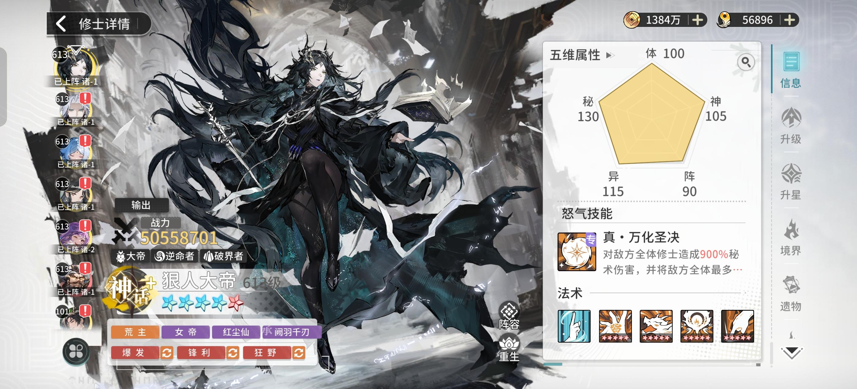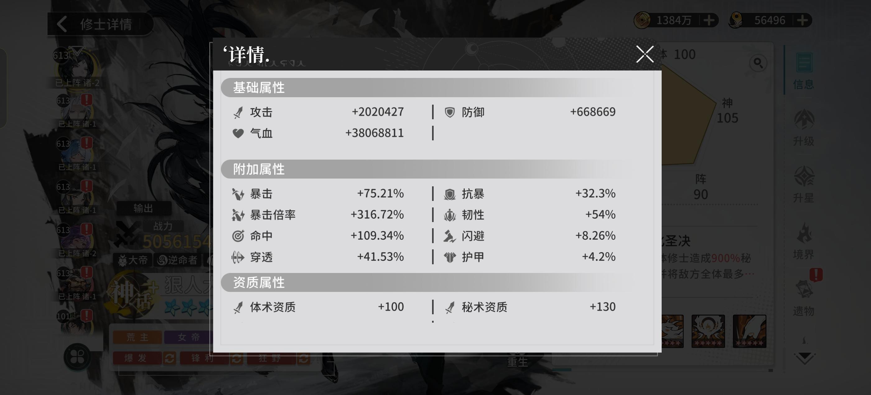 开服第127天,狠人突破14星单体战力5000万战图3是局外数据,图4是局内数据#气运 #世家队 #遮天凡尘一叶