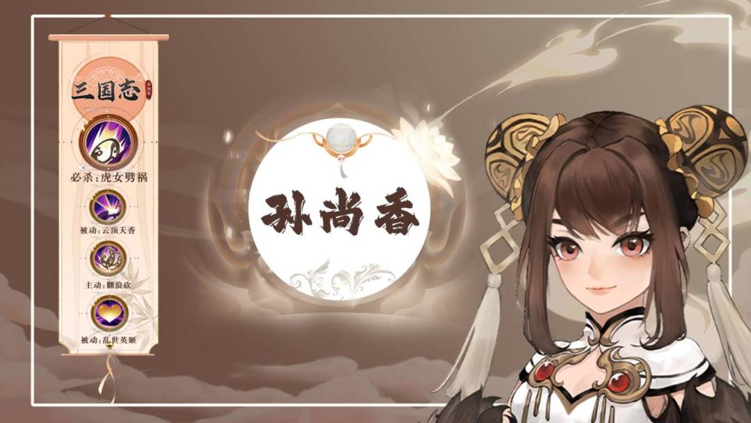 亲爱的主公们,大家好! 本期武将图鉴为大家带来的是“东吴郡主”——孙尚香 【武将简介】 【阵营】蜀国 【职业】群攻 【定位】群体伤害高的闪避武将。 【特点】闪避高、生存能力强,每一次闪避都能增加孙尚香的伤害跟打击目标。 【优势】爆发力强,并且具有较强闪避能力,存活性高 【获取方式】 活跃度奖励 信物兑换 【技能解析】 【灵符选择】 由于孙尚香在团队中的作用只可以承担输出,只能打持