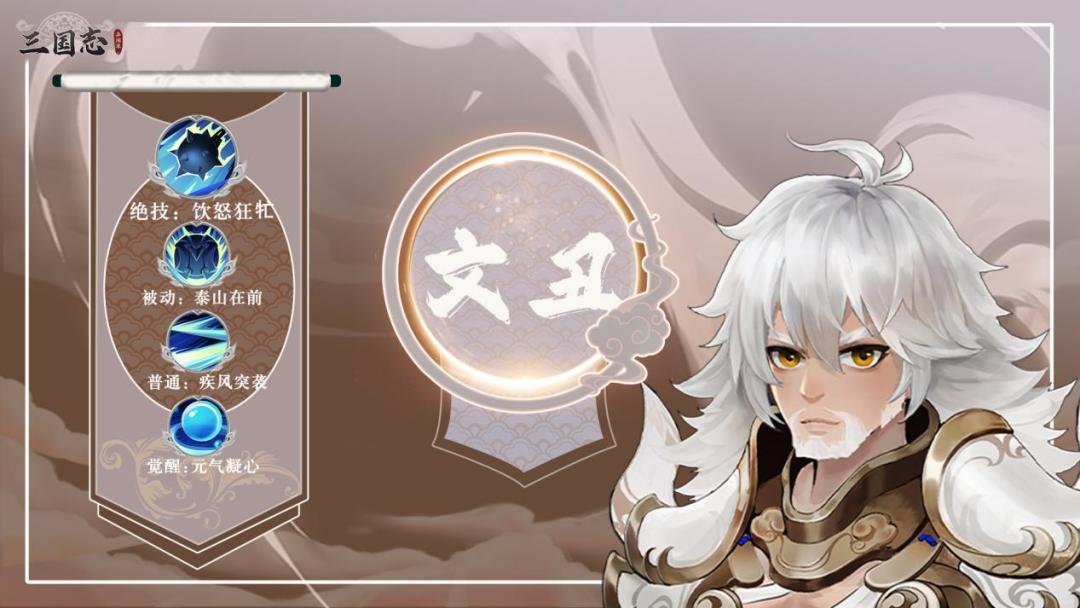 亲爱的主公们,大家好! 本期武将图鉴为大家带来的是“骁勇之将——文丑” 【武将简介】 【阵营】群雄 【职业】防御 【定位】保护类型的防御武将 【特点】可分担远程伤害,保护的目标很难被击杀。 【优势】能援护队友并且具有一定的生存能力 【获取方式】 【技能解析】 【培养路线】 性格为休闲、信赖。 性格选择和培养路线 文丑主要看生命、防御,改造时主要把生命跟防御值堆高。研究顺序如