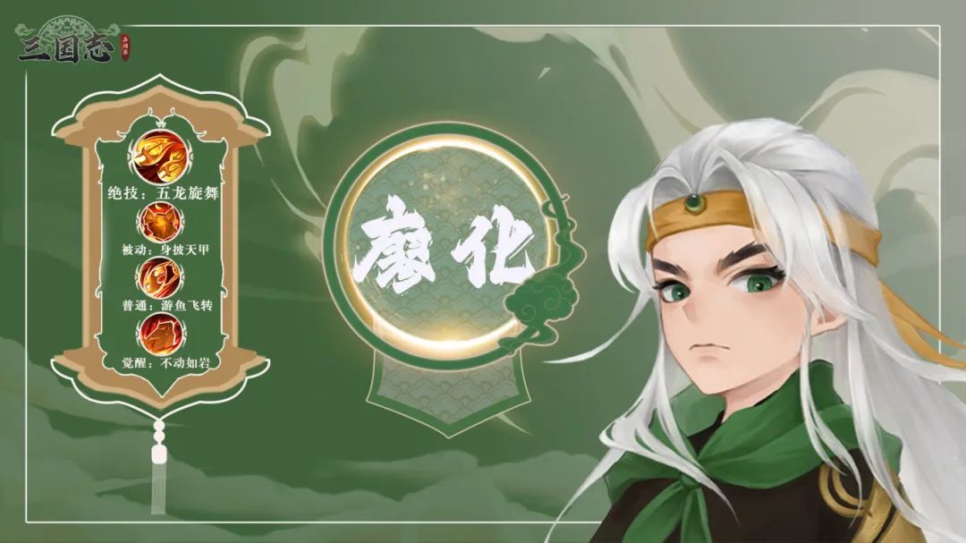 亲爱的主公们,大家好! 本期武将图鉴为大家带来的是“刚直勇者”--廖化。 【武将简介】 【阵营】蜀国 【职业】控制 【定位】廖化是控制型武将,但平时的也可以当输出武将来使用,伤害高生存能力强。 【特点】释放必杀技会造成混乱控制效果;出场或释放必杀技时会给自身和主角添加“忠诚之盾”的效果,该效果除了可以提供伤害吸收外,回合结束时还可以额外回复一点怒气;可以提供额外的百分比攻击效果。 【优势】