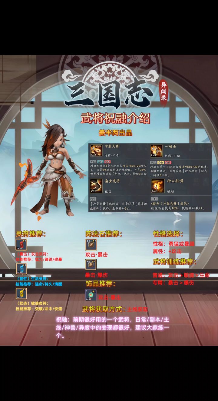 #三国志异闻录 祝融是一个前期很好用的武将。