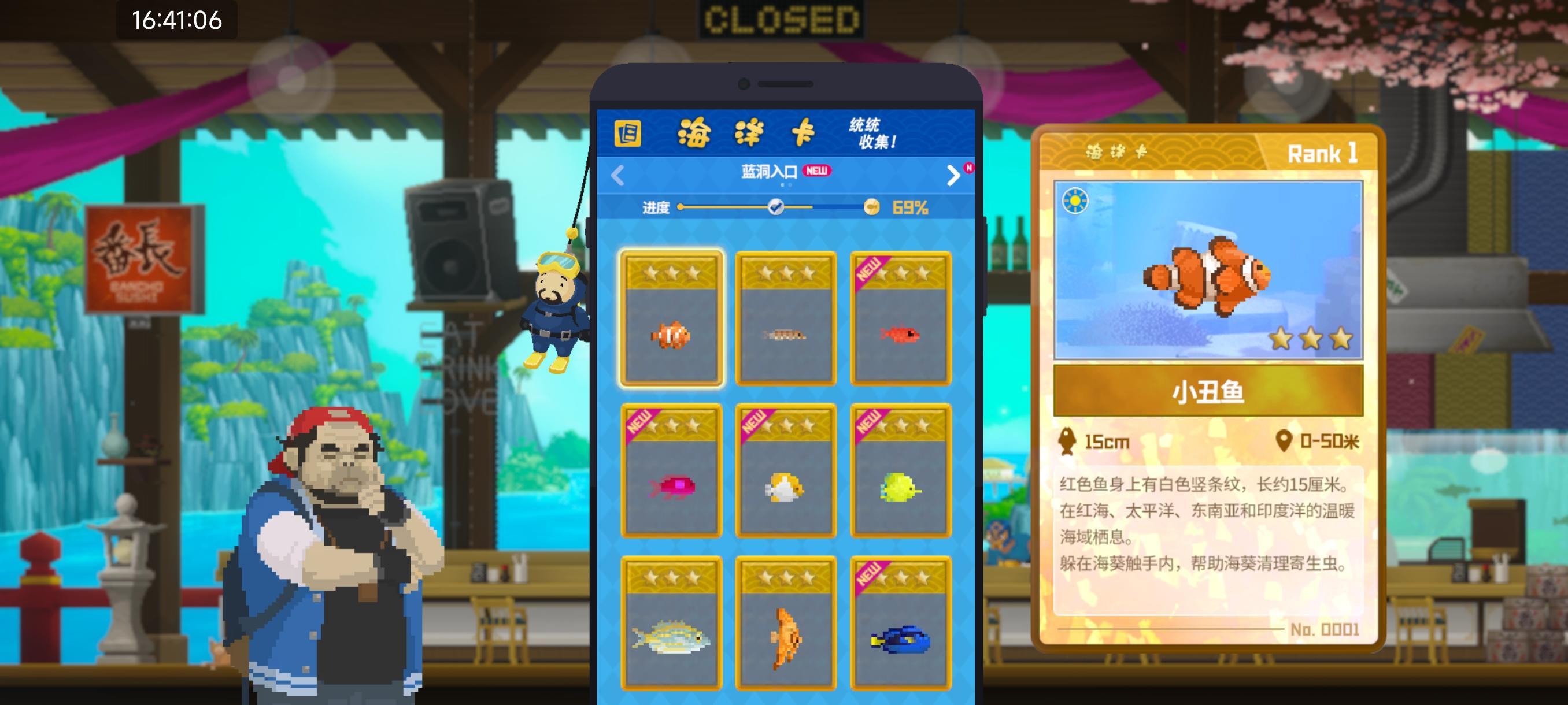 目前玩法,升级装备下海抓鱼,再通过寿司店做菜进行变现。测试服里鱼的种类挺多,独特性也不错。看着仓库里材料变多和自己金币增多挺有成就感,但目前内容太少,正式服移植的时候估计会更耐玩点,但听说steam上后面内容会重复枯燥,有点小耗时间。所以有一定忧虑,但目前来看还是玩的不错,对后面章节好是期待的。