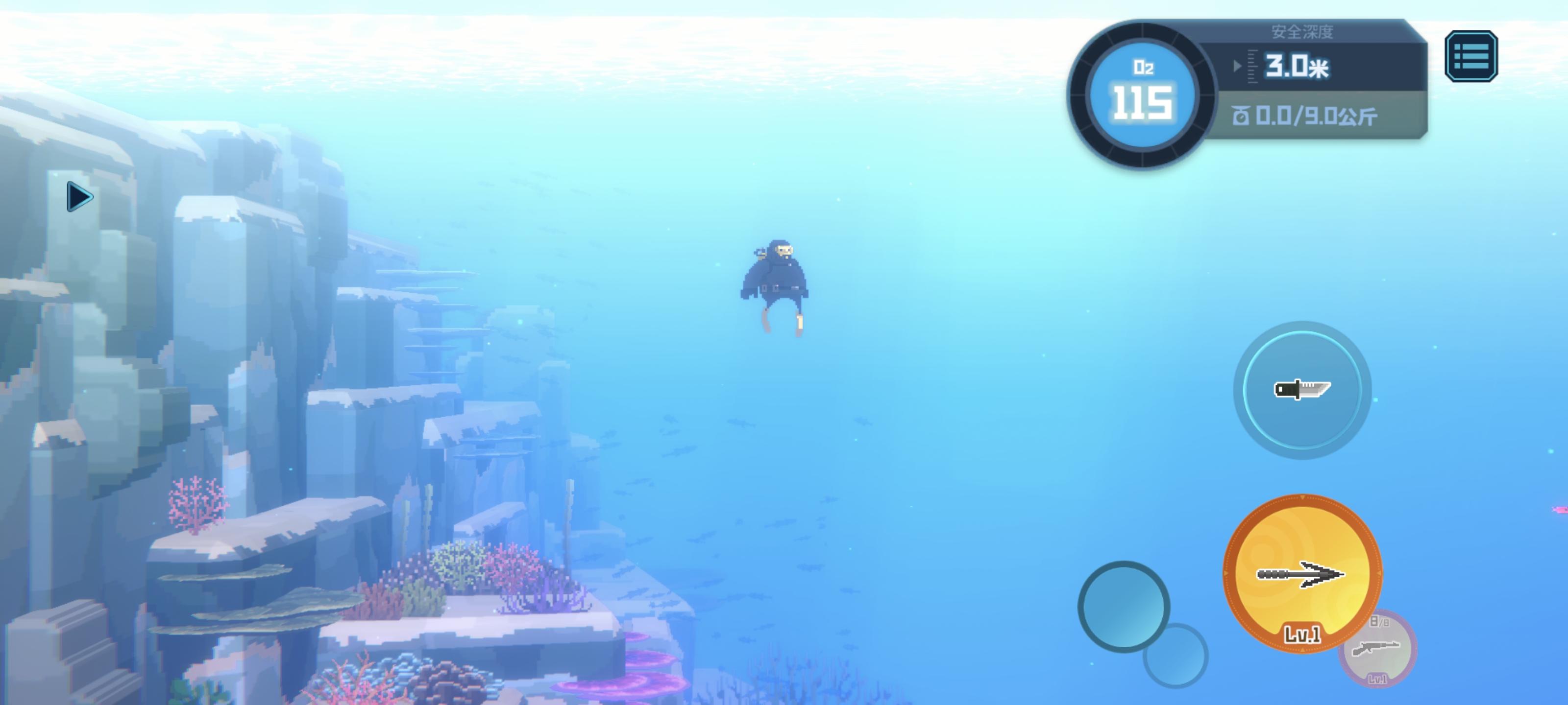 装备更新需要金钱,可以更新背包扩充负重,或者提升氧气瓶容量,让单次下潜的效率更高。遇到攻击性强的鱼,容错率也有提升。