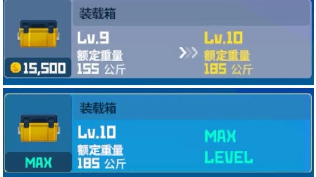 众所周知,潜水员戴夫的装载箱标注的额定载重并不意味着只能装这么多,再装多点也行,只是会超重影响移速,直到装不下 我们贪夫要做的就是塞满装载箱,塞到装不下为止,并且在彻底装满之前尽可能多装点东西 那么熟知极限载重临界点就能帮助我们更好地装更多东西,如果我们在达到临界点之前塞一条重一点的大鱼进去,就能带更多重量上岸,每0.1公斤都是贪夫收获的喜悦! 举个例子: 例如7级装载箱的极限载重临界点是109公