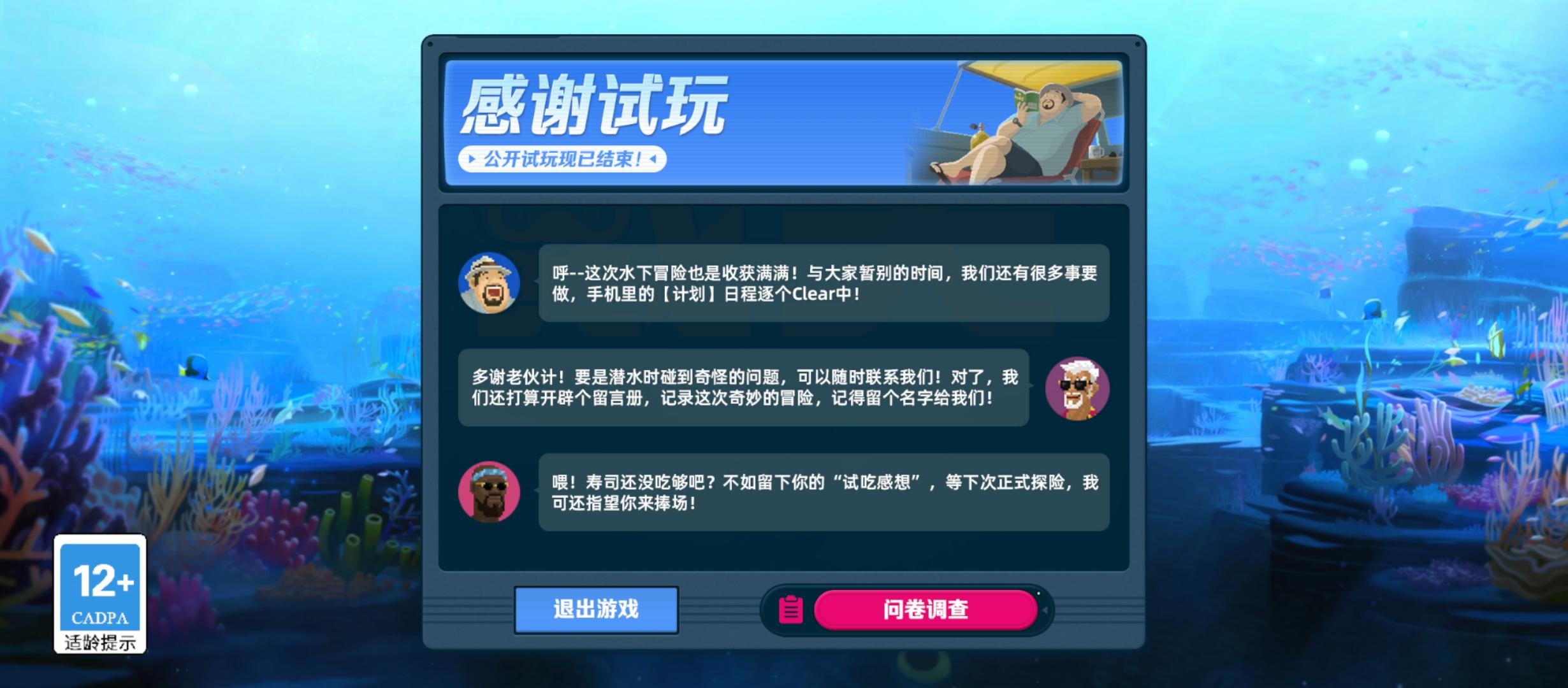 📱潜水员戴夫手机版📢📢📢2月6日正式上线!年前就能玩上了耶!✋超过50我不买,但居然只要2️⃣4️⃣啊!2️⃣4️⃣=游戏本体+渔帆暗涌DLC+游戏设定集DLC(含4款船皮+近40首原声音乐+设定集图片)之后还有和MUSE DASH的双向联动!💕这波诚意满满,我就笑纳了!!-✨手机版是原汁原味的移植!完全可以放心!‼️更好的消息是,存档三端互通,Steam存档可导入手机版,很体贴老玩
