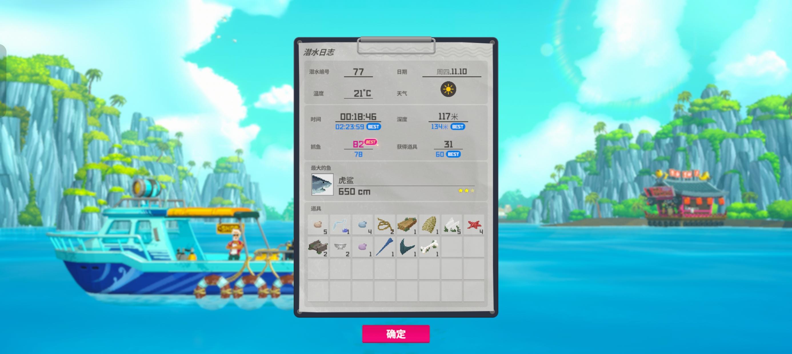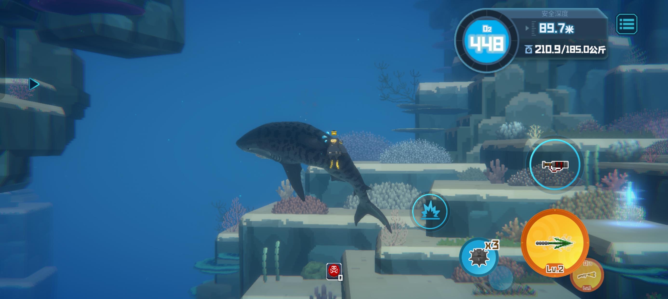 这旗鱼的刷新点好像和金枪鱼差不多都是20到30多米深度,但是为什么是两条两条一刷的啊?还好我捡到三个炸弹💣炸了三下然后鱼叉和三旋枪补了几下才抓到,一条好对付,攻击都有前摇,但是两条真的只能换血,血不够了下去吸了一个氧气瓶才把第二条打死