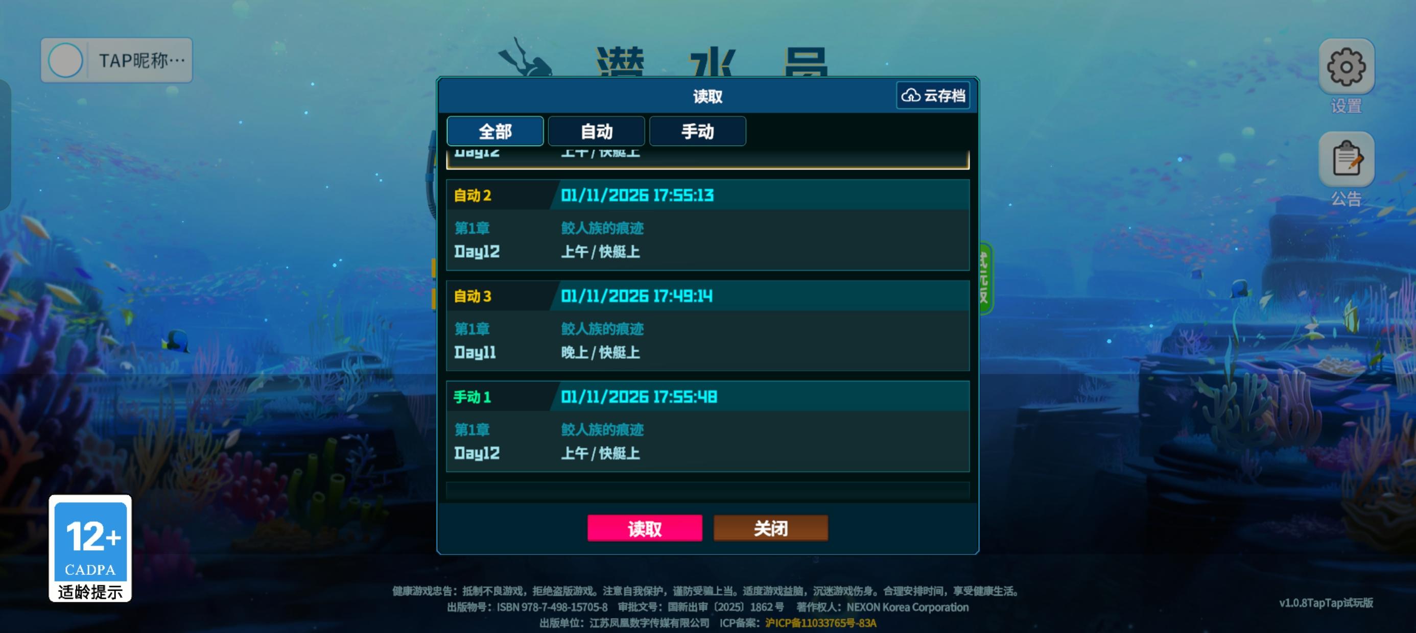 今天戴夫到处闲逛,刷到好几个潜水员大呼“忘记上传云存档了怎么办“,感觉天都塌了😱通常这样的关键信息,戴夫都会准备帖子、群公告告知大家的!大家可以关注我们,或者加入戴夫的官方群,来收取这些关键通知。【XDx潜水员戴夫】官方14群1074847705包括未来的发售计划也能第一时间知道!另外戴夫也想了一些办法,希望能给没有来得及上传云存档的潜水员们提供一点帮助:🔔首先!一定!不要卸载DEMO!