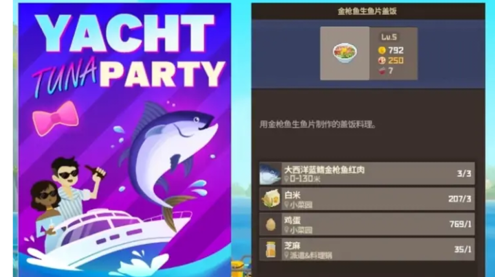 #潜水员戴夫 #潜水员戴夫攻略 你最喜欢哪种派对活动呢?后面会出一期关于派对活动的详细版攻略,这篇只做菜品推荐以及相应材料介绍正文:派对活动相信大家已经不陌生啦,测试版本下不少小伙伴反映虾和咖喱派对没有菜可以卖,少赚好多好多金币等到正式版上线就不用发愁咯,本期正好为大家推荐一些派对菜品(仅作推荐,过渡菜品等会在后面详细攻略的帖子中做介绍喔)派对一:金枪鱼派对①金枪鱼生鱼片盖饭❶大