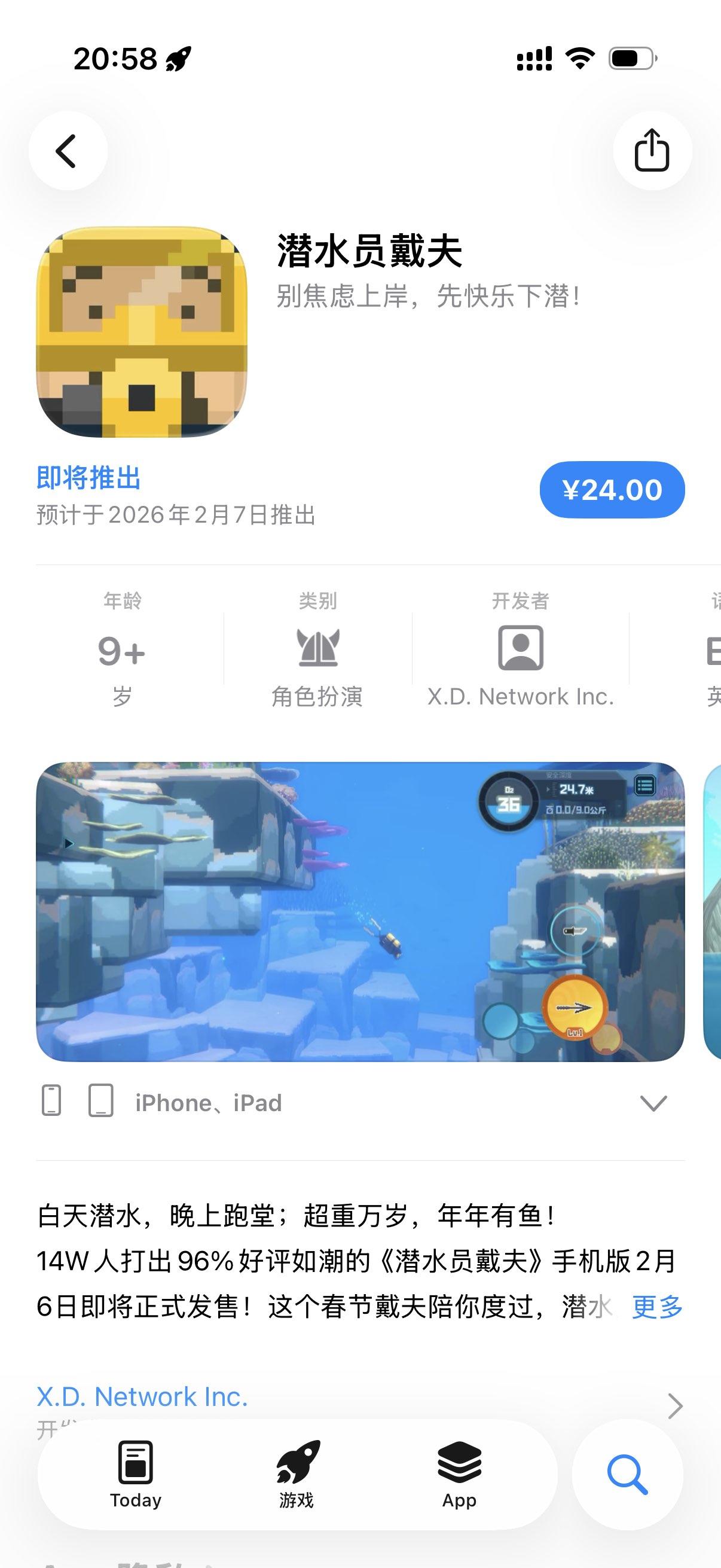 可以这波比pc端便宜很多,我还以为要35呢,才25可能还有首发优惠,这价格太爽了。首发一定买啊而且两周后就能买大家都准备一下钱包啊#潜水员戴夫 #潜水员戴夫手游 #今天游戏圈发生了啥