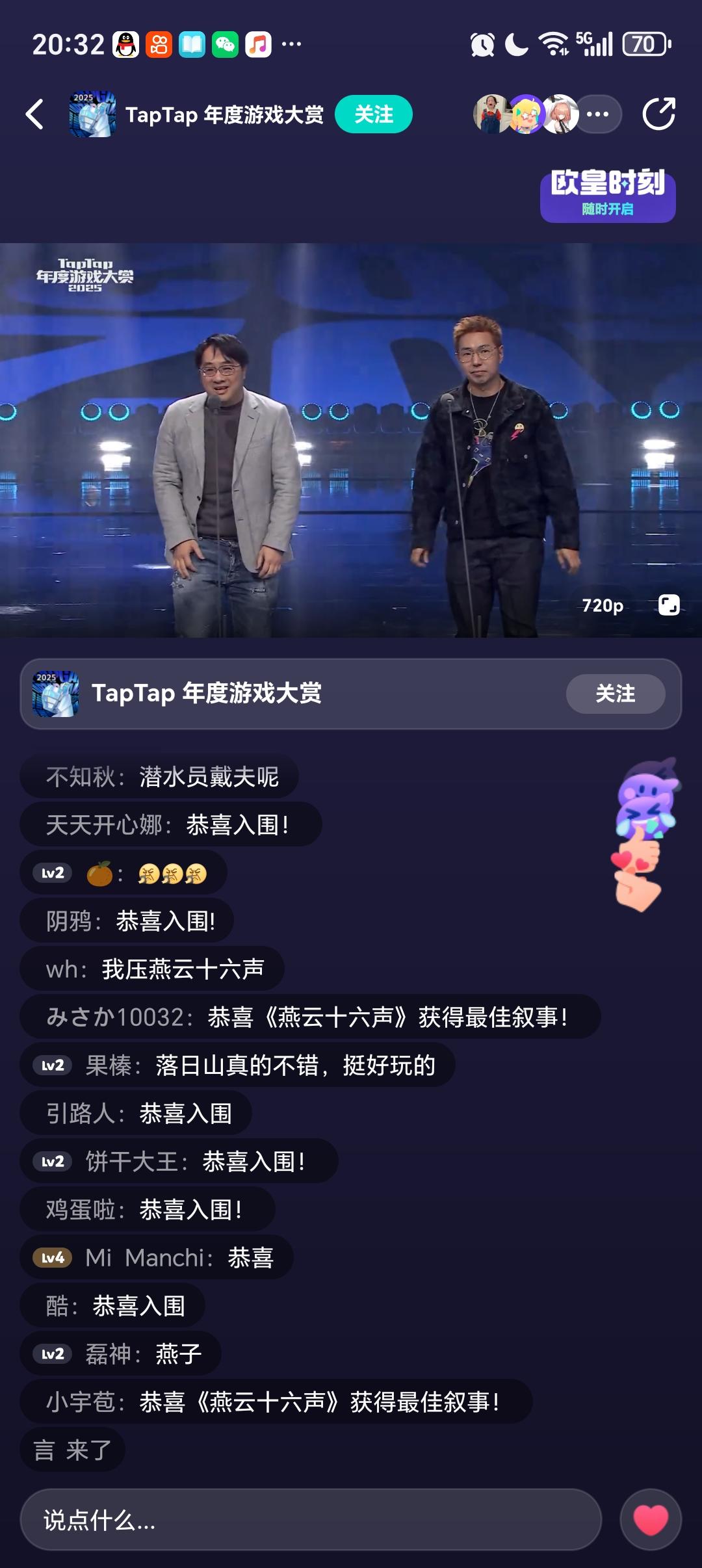 各位潜水员,今天收获满满了吗?!明天就是《潜水员戴夫》登上TapTap年度游戏大赏的最终之夜了,但比起获奖,我们更期待与大家分享游戏的具体发售计划、手机版的独占联动内容、以及即将到来的活动!明天的TapTap年度游戏大赏将在明天(1月24日)19:30正式开始,以下是给大家的直播围观指路:在TapTap搜索“大赏”或通过链接进入直播:同时,大家也可以在B站、抖音、微博等平台收看明天的直播。