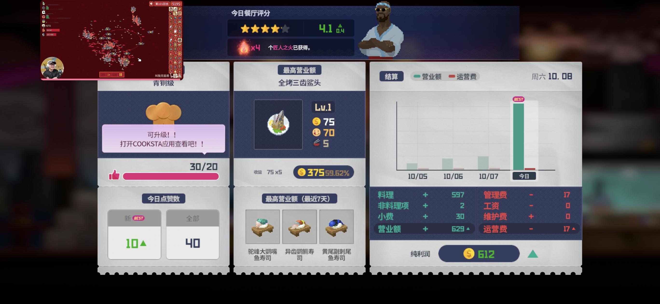 #潜水员戴夫 玩了这个游戏,有几十个小时,现在每天晚上基本上稳定四五万,给大家推荐一下这个菜品,前期目前为止,我认为最赚钱的一个菜也非常容易做,材料都是很常见的,下潜一次就能打很多,大米,你家肥料收成也很多,基本上可以每次一成熟都稳定做这个菜,然后每天做五份,就会有35个,卖完很赚钱,记得升级