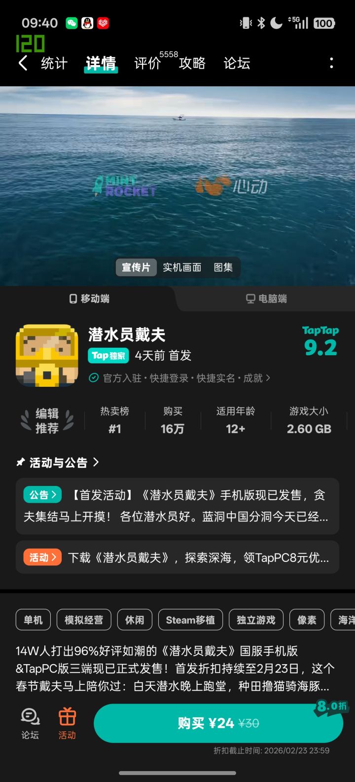 今天刚上手《潜水员戴夫》,本来只想随便玩半小时试试水,结果一晃眼几小时过去,直接被这个“海底摸鱼+寿司店经营”的组合拳拿捏了!作为纯新手,从一开始手忙脚乱怕被鲨鱼追,到后来慢慢摸清门道,边捕鱼边开店的快乐真的太上头了,忍不住来TapTap跟大家唠唠我的真实游玩感受~作为手游端玩家,必须夸夸游戏的操作适配,本来还担心搓玻璃玩潜水会不顺手,结果发现虚拟摇杆的指向性特别精准,鱼叉瞄准、躲避攻击都很丝滑