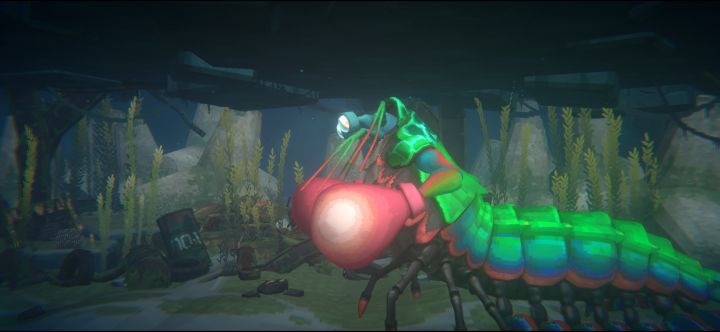 卡车螃蟹很简单,这个也是,只要走到下腹部,它就打不到了,躲过最后一拳挥臂后,螳螂会短暂漏出眼睛,趁这个时候游上去给它来一下,大概四五枪就结束了,基本可以无伤