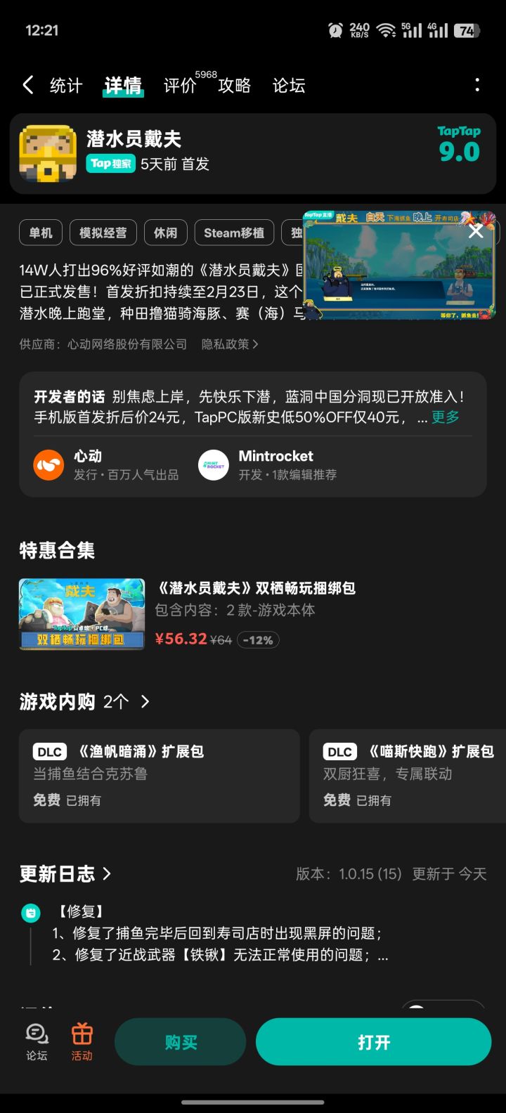 今天刚上手《潜水员戴夫》,本来只想随便玩半小时试试水,结果一晃眼几小时过去,直接被这个“海底摸鱼+寿司店经营”的组合拳拿捏了!作为纯新手,从一开始手忙脚乱怕被鲨鱼追,到后来慢慢摸清门道,边捕鱼边开店的快乐真的太上头了,忍不住来TapTap跟大家唠唠我的真实游玩感受~作为手游端玩家,必须夸夸游戏的操作适配,本来还担心搓玻璃玩潜水会不顺手,结果发现虚拟摇杆的指向性特别精准,鱼叉瞄准、躲避攻击都很丝滑