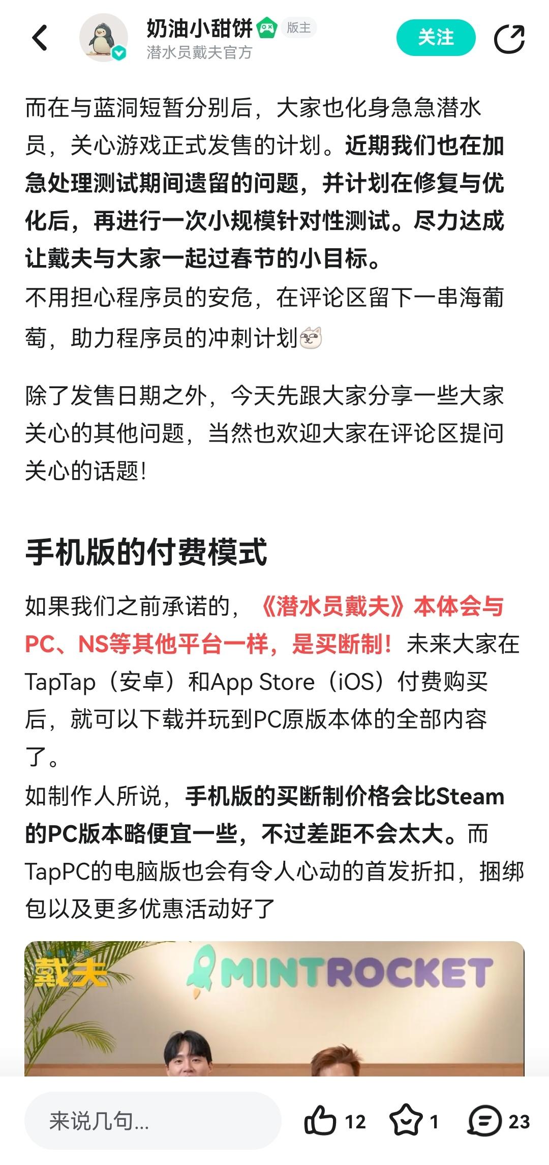 咱的Coser包还原的[表情_酷] 以及!还有潜水员没有在TapTap年度游戏大赏给戴夫投票送戴夫出道吗? 直接在TapTap搜索”年度大赏“,就可以为《潜水员戴夫》在“玩家最期待游戏”中投上一票! 也欢迎大家在TapTap分享为《潜水员戴夫》投票的截图或是拉票海报,并带上#送戴夫出道 的话题。 🎁我们会随机抽50位幸运潜水员,送出《潜水员戴夫》官方周边手机挂坠——潜水员戴夫版!✨ *手机链是