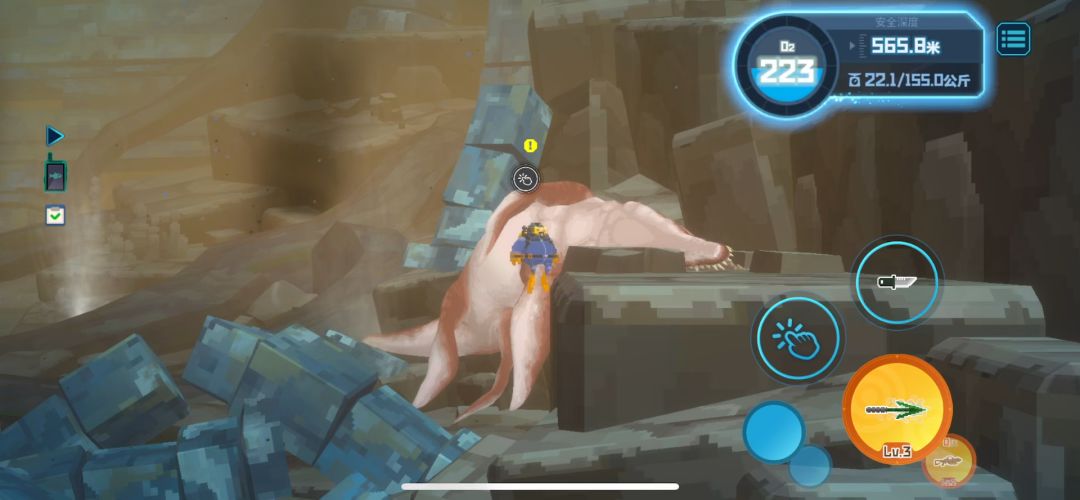 10.01,眩晕锤全抓蛋黄水母卖寿司371金币,有个机制是不抓够7条鱼上岸不会结束这一天,还能继续下潜抓鱼搜集资源,直到抓够7条鱼,我觉得这有点太bug了,不打算利用,就正常一次下潜抓够鱼上去了10.02,抓三齿鲨头备用,抓鹦嘴鱼卖寿司377金10.03,早上升级装备潜水服3级,装载箱4级负重28~41kg,算上任务给的金币刚好够升,剩余3金币,今天下海抓了三齿鲨头2.5kg+两条锯齿鲨26k