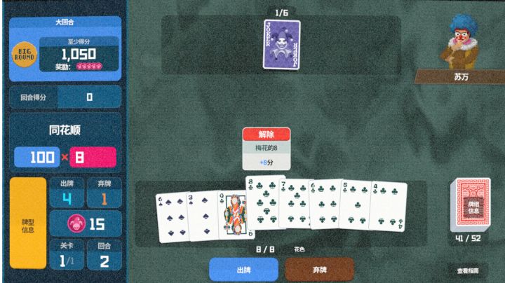 震撼好玩,一不小心就连续玩了4个小时。以后我每次来鲛人村都要玩这个。从最开始连一种牌型都没听过的睁眼瞎,到如今的烧脑与趣味与激动共存。话说这游戏现实是不是叫“十三水”,还是“梭哈”?但小丑牌的玩法好像没见过。感觉最强的套装就是用小丑牌的人头牌大全套,也可以再加一个复制牌酌情放到加分最大的地方。我的同花顺#潜水员戴夫