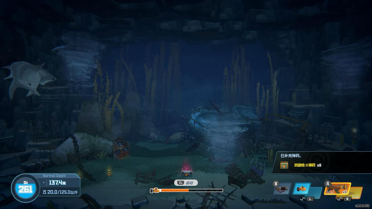 带四旋枪,升三级,氧气瓶至少8级370bar那档,近入漩涡之前别跟其他夜行鱼类纠缠,对了,还要找上最少一台电动摩托艇,我第一次误闯漩涡跟大白鲨干了十几把,实在是武器也不行氧气瓶也不够,摩托艇还剩一半电,无奈放弃。第二次就做好了充分的准备啦,各位戴夫们,准备接受在下一个暴风雨夜晚的挑战了吗