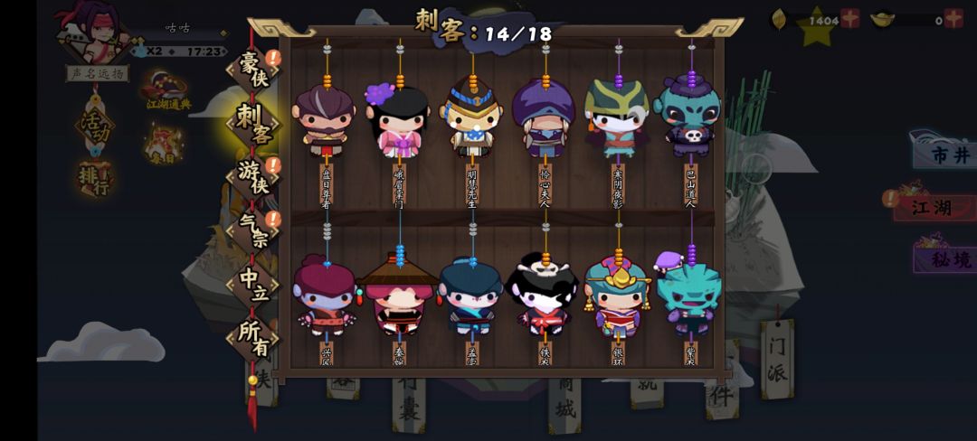 •豪侠: T0潜龙复制流 T0豪侠叠甲 T1豪侠自残流 T1豪侠血魔神教 T1豪侠防御流 T2豪侠追击流 T2豪侠顽童暗猴棒 T3豪侠反伤流 T3豪侠一拳流 •刺客: T0刺客废牌流 T0刺客毒刺 T1刺客抽针流 T1刺客面板赤练 T1刺客面板针 T1刺客弃牌流 T2刺客针流 •游侠: T0游侠融剑流 T0觉醒东海仙子面板流 T1游侠冰冻流 T1游侠万剑追步流 T1游侠连击流 T2游侠射箭流 T2