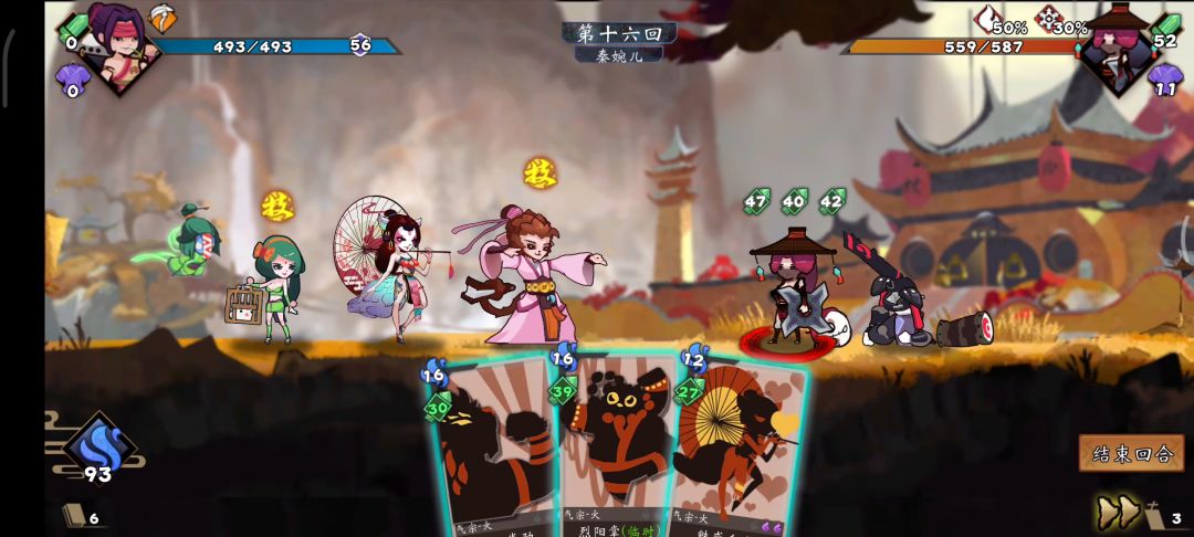 上图,射箭132伤害,我放残心后再射箭,只造成428-326=102伤害