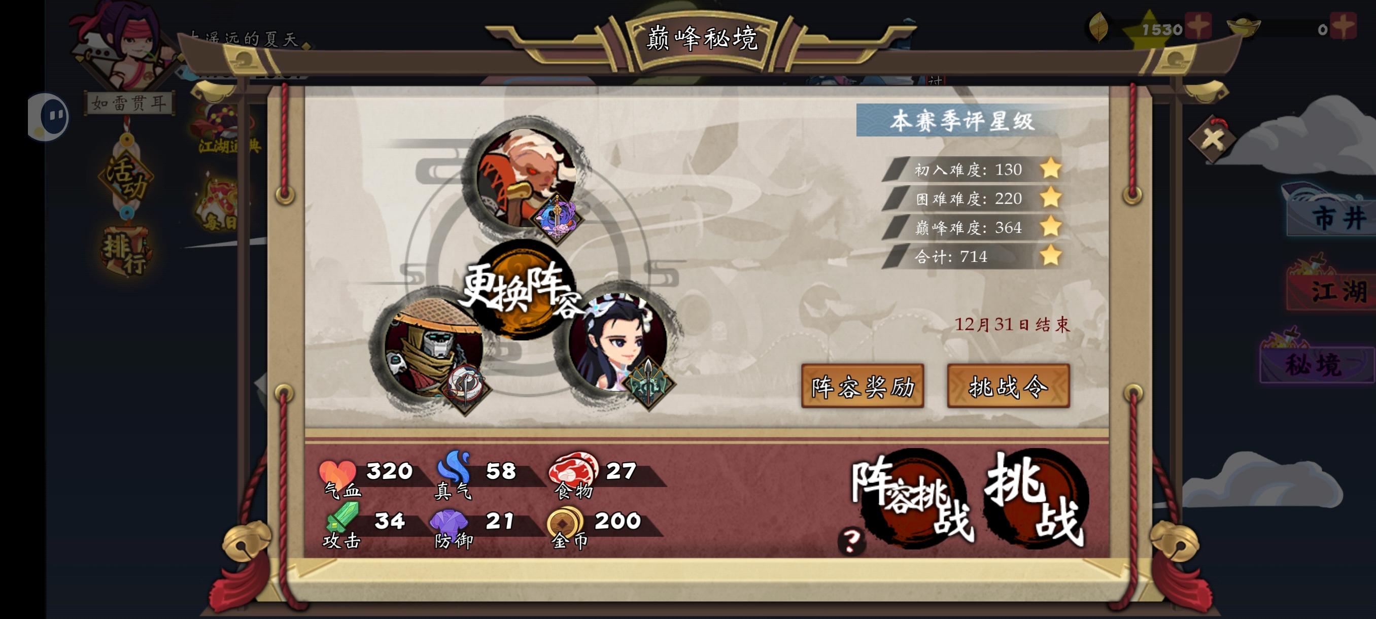 感觉很多新人小伙伴疑问很多,给目前版本简单一个开荒攻略。首先开局抽,游戏共四大阵营,豪侠、刺客、游侠、气宗,有些武侠是可以通过活动和布偶商店兑换的,有些是只能从图书馆抽取的。所以如果想开荒顺利点,那开局抽的重心就在后者身上,这里面刺客的玉面毒君,游侠的无意剑客,气宗的滇南世子比较重要(还有一个气宗的演山真人也是只能靠抽,他是阵法流的核心,成型较慢,不适合开荒)。玉面是毒刺流核心之一,无意是融剑流