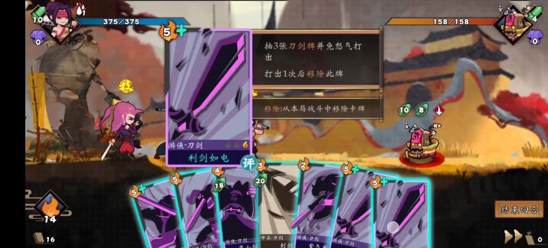 这次还是中期的打法,要求火蛇炙火,能删牌就多删牌。boss喜欢撕牌就随便撕。 升级至阳掌,最好有连携,没有的话尽量在抓牌环节抓一张连携拳脚。视频中附魔是转化疯狂,其实没啥用。 前面抓牌没抓到连携的话,建议老乞丐换灭绝。 打法思路,第一回合融拳融至阳掌,连携拳脚和带灼烧的拳脚,以后每回合先打融拳,再打其他拳脚,避免复制错卡牌。 注意boss技能,第二回合有个无懈可击,别硬打融拳了。 萌新老是前期被打