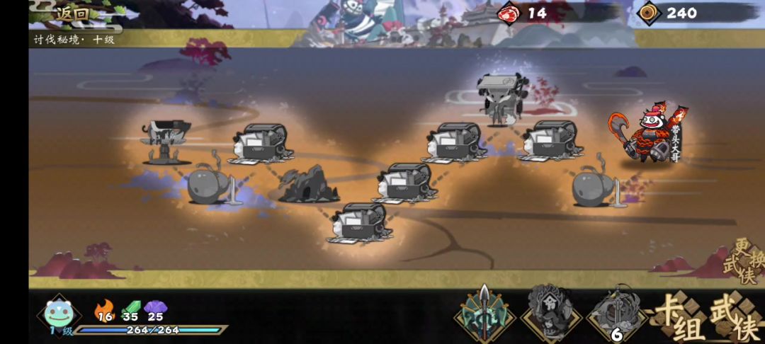 步入中期,即使没有暗冲拳,也可以不用找峨眉心法即可顺利打讨伐啦!!而且这套阵容无论是速度还是爽度已经和顶配融拳相差无几。 符文要求:朱雀剑:戏法同心狂烈(有最好,没有也行);圣火令:火蛇;霸王枪:炙火 开局升级至阳掌,主要观察是否附魔连携,如果没有,可以在后续发育中寻找带连携的拳脚(实在没有找到也没关系),祭坛无特殊要求,建议选择撕牌,发育路上删牌最优先,山洞给融拳升级,相当于撕一张牌,替换武学将