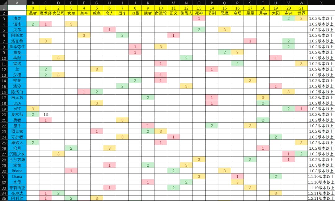 截至1.2.12版本的召唤表