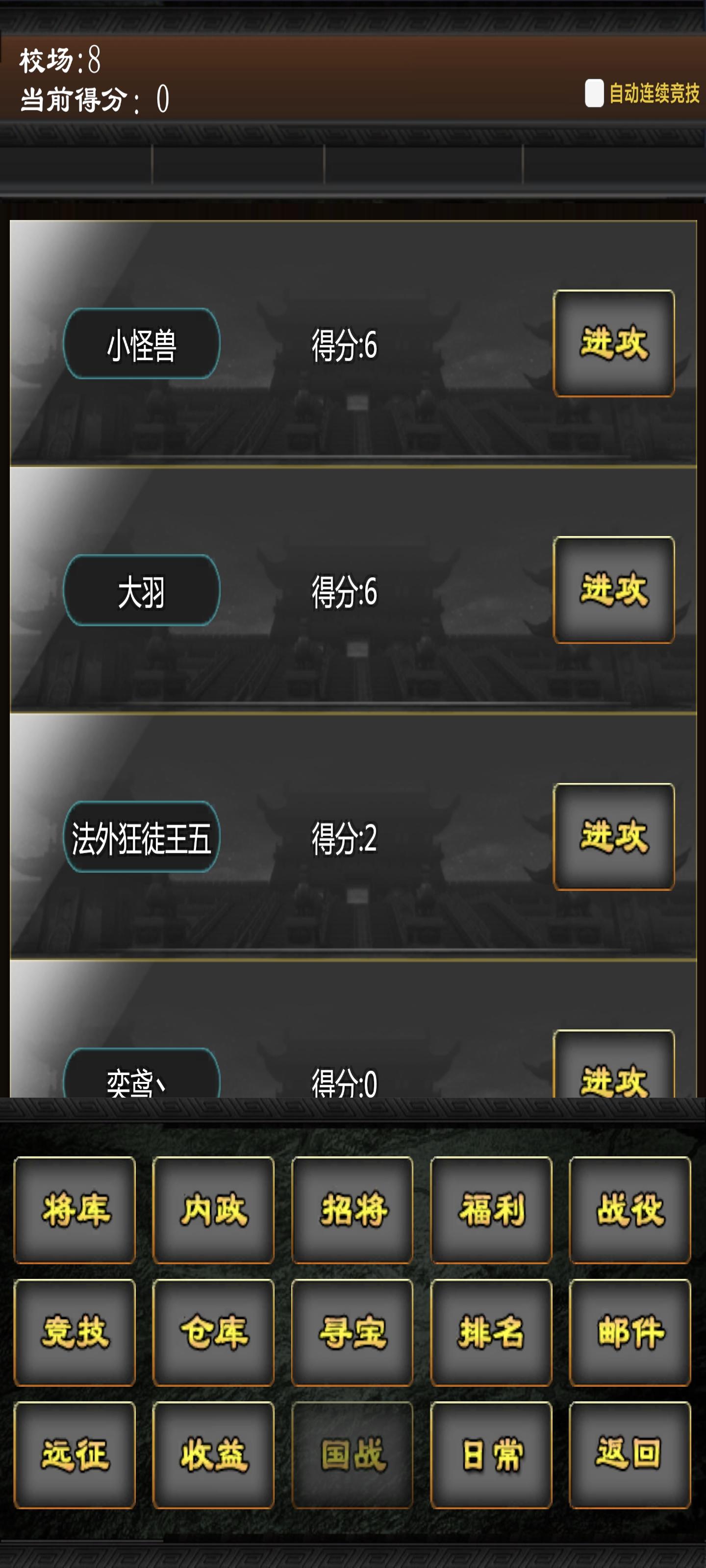 开局选择 直接点推荐,也可以选择刷刘备张鲁开局。军事和内政总和120,建议选择60/60,现版本均衡发育越快。5星选刘备,3-4星随意。刚进游戏先领福利码,得到元宝和白银,用元宝买150的五星将3个,最好有魅力大于95的。 前期推图与抓将 用开局和评论得到的4-5个高魅将一路往后推图,推到董上可以留在董上刷到100级,顺便抓贾诩。如果高魅将不够多,可以分解合成得到高魅将换掉魅力最低的。