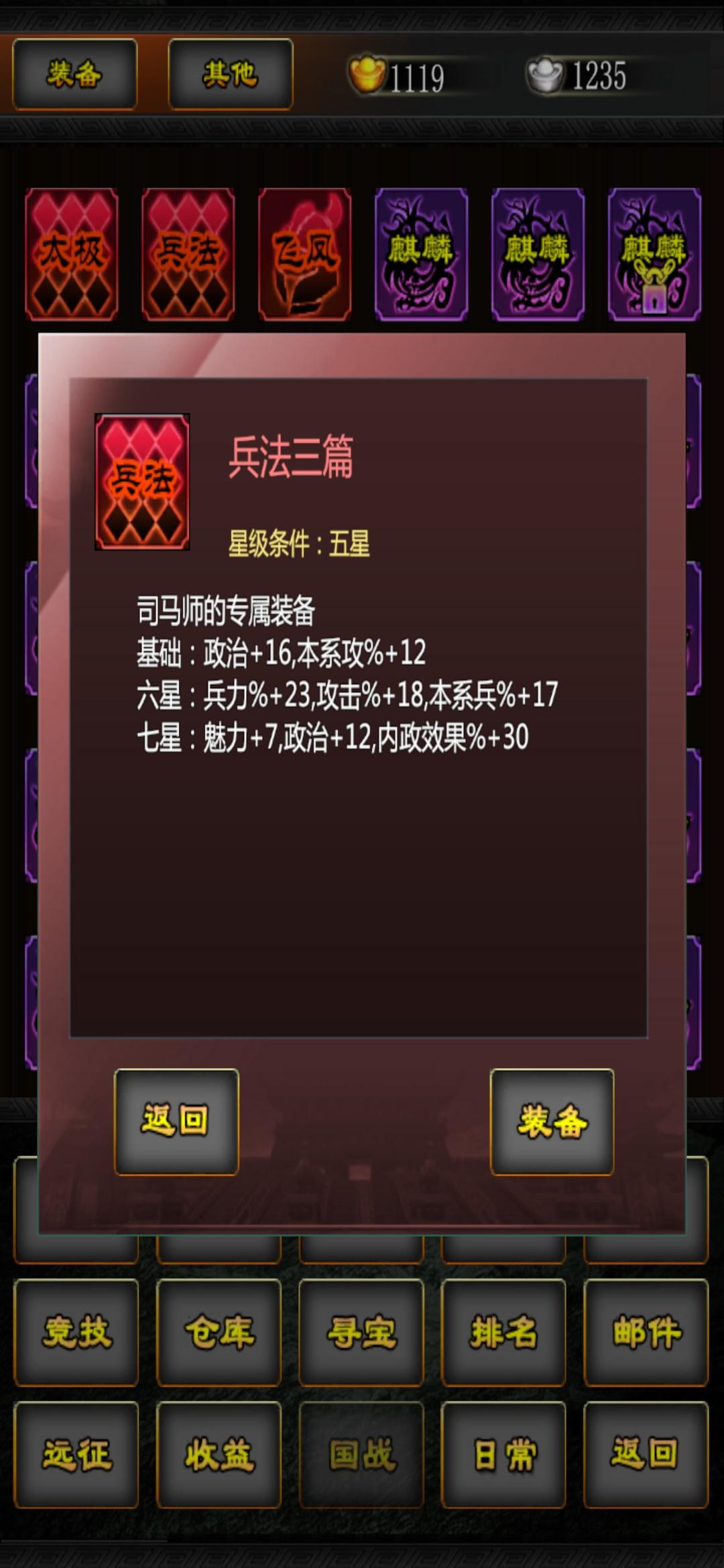 希望可以多增加一些组队的玩法,增加玩家之间的互动性。比如一直没出的国战等 ID:83176 角色名:步驚雲 VIP7