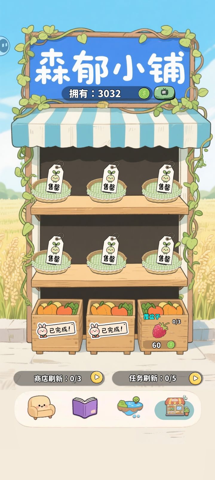 播种与收获不成正比哦,种下去要花大量的金币购买肥料和水,不然根本没办法进入第二阶段,进入第二阶段以后熬过时间又要花费更多的肥料和水。(不看视频的情况下,金币是完全不够用的)
