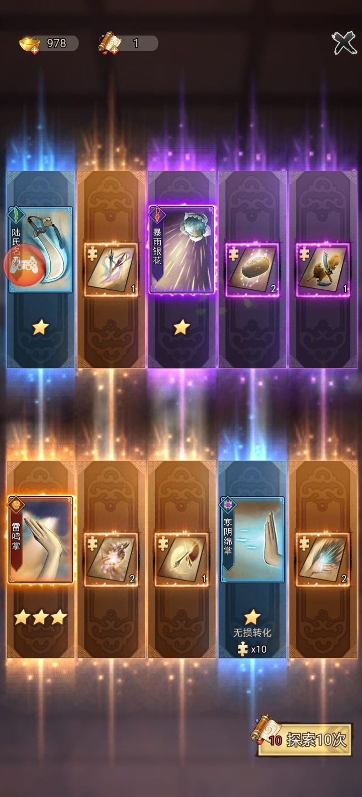 (如果大佬有不同思路和见解欢迎指正)卡组搭配:【金龙锥】+【金针打穴功】+【暴雨梨花】+【万指冰针】+【寒沙射影】出牌顺序:金针打穴功起手→其余暗器卡随便打→金龙锥收尾。辅助卡:【无形琴音剑】+【青砂掌】+【飞花落叶掌】+【百伤拳】+【伏羲剑法】思路解析:【金龙锥】是这套卡组的核心,围绕着给金龙锥增伤而搭配的一套卡组,没有金龙锥不建议玩暗器卡组。【金针打穴功】心眼加命中,兵刃减耗,