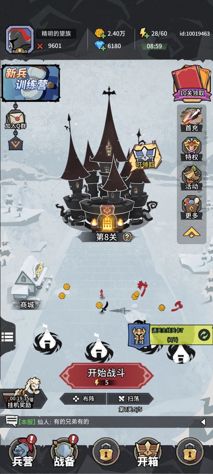 1、整体游戏是养成➕塔防攻略➕休闲肉鸽的模式,操作起来有点像单机小游戏《占山为王》的进化养成版。也吸收了其他肉鸽游戏的活动内容。虽然现在不是游戏大ip,但是比现在满天飞的肉鸽游戏有养成策略和推图挑战性,同样的数值去推图,但是选择不同的运兵时机、进攻据点不同的选择、升级据点的先后顺序,都有很大的差距。一个关卡推不过去,玩入迷了就会一直琢磨有没有更优化的方式,若是实在脑汁绞尽也过不去,就只能等第二天做各种任务提升自己再来试试了,哈哈😂