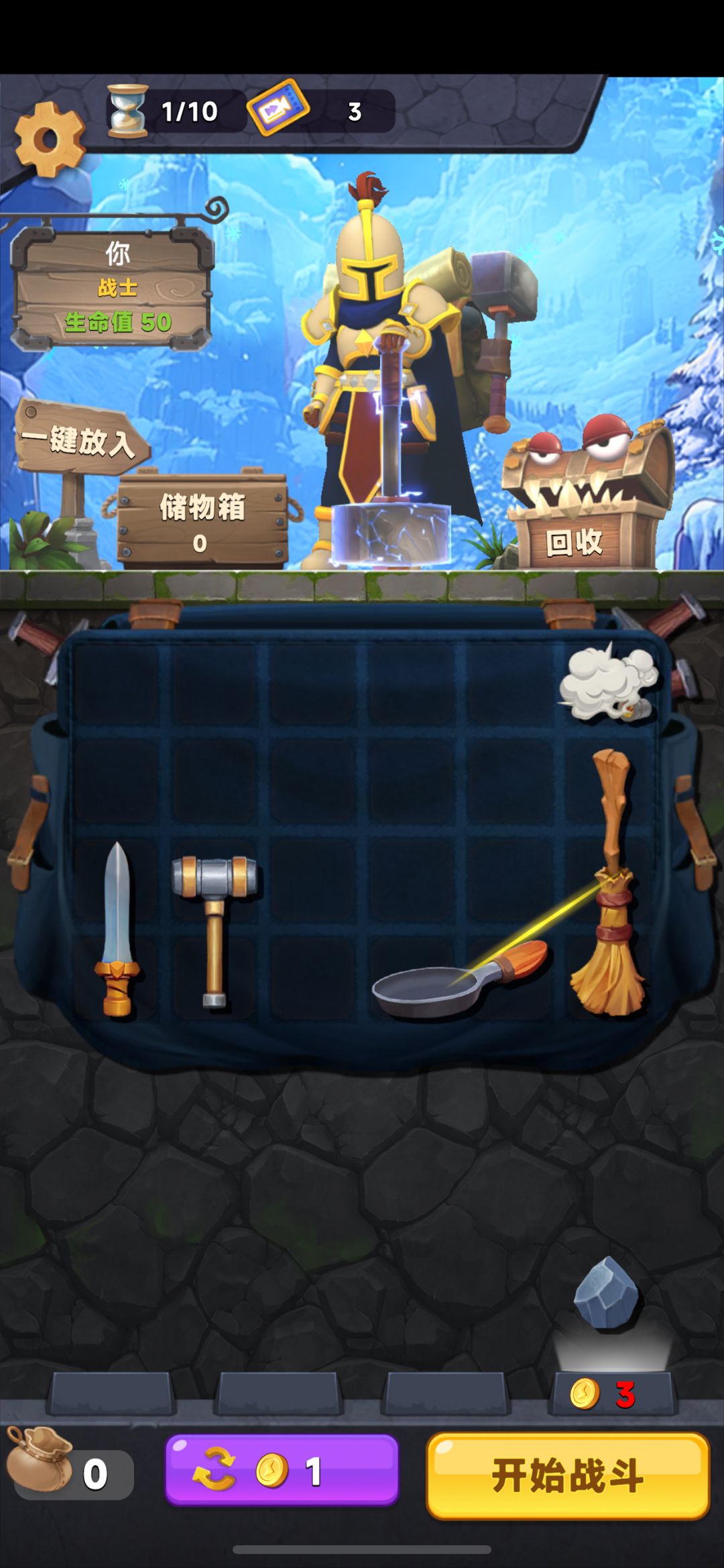 过图 只需要:烟雾弹+3把铲子+其他保命,随便过图,甚至玩到pve25通关。 银币主升:烟雾弹 平底锅 扫把 铲子 绷带 蓝甲以及紫色甲或者弄一个神圣甲,其他小体积的治疗食物 卡宝箱刷神品船长:不要主动去合成神品武器,主线 大锤子+棒槌=神品锤子,不要去合成 放远点或者其中一个卖掉,然后出来看背包神品的合成,注意就可以 现版本之子神品船长,其他都是dd